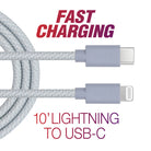 10' Braided Lightning to USB-C Fast Cable | Blue MFi