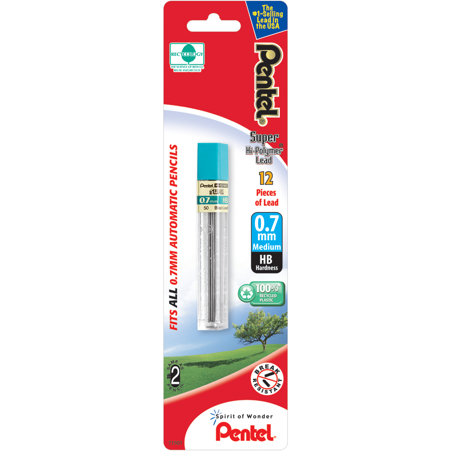 Pentel Super Hi-Polymer Replacement Lead Gray .7mm/HB 12Pk BP 1Pk